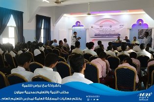 برعاية مدير عام مديرية سيئون الأستاذ: *محمد عوض العامري* وبالشراكة مع جمعية نبراس للتنمية ، نظمت إدارة التربية والتعليم بمديرية سيئون (قسم الأنشطة المدرسية) يوم الثلاثاء ١٦ مارس حفلا ختاميا وتكريميا للمسابقة العامة لمدارس التعليم الأساسي والثانوي *(بنين وبنات)* بالمديرية بمشاركة ٥٤ مدرسة .