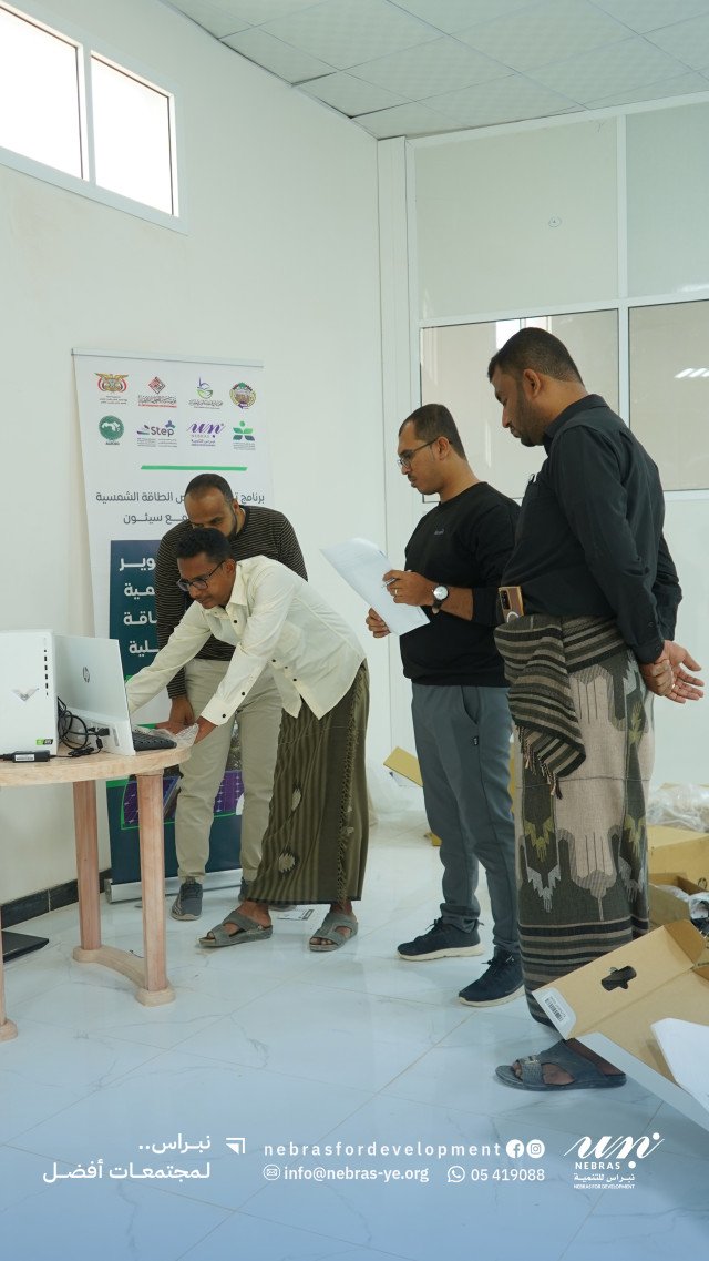 ويأتي تنفيذ هذا المشروع ضمن برنامج تطوير تخصص الطاقة الشمسية بكلية المجتمع – سيئون، بتمويل من مؤسسة العون للتنمية وجمعية الشيخ عبدالله النوري الخيرية، وإشراف وزارة التعليم العالي والبحث العلمي والتعليم الفني والتدريب المهني، وتنفيذ جمعية نبراس للتنمية.