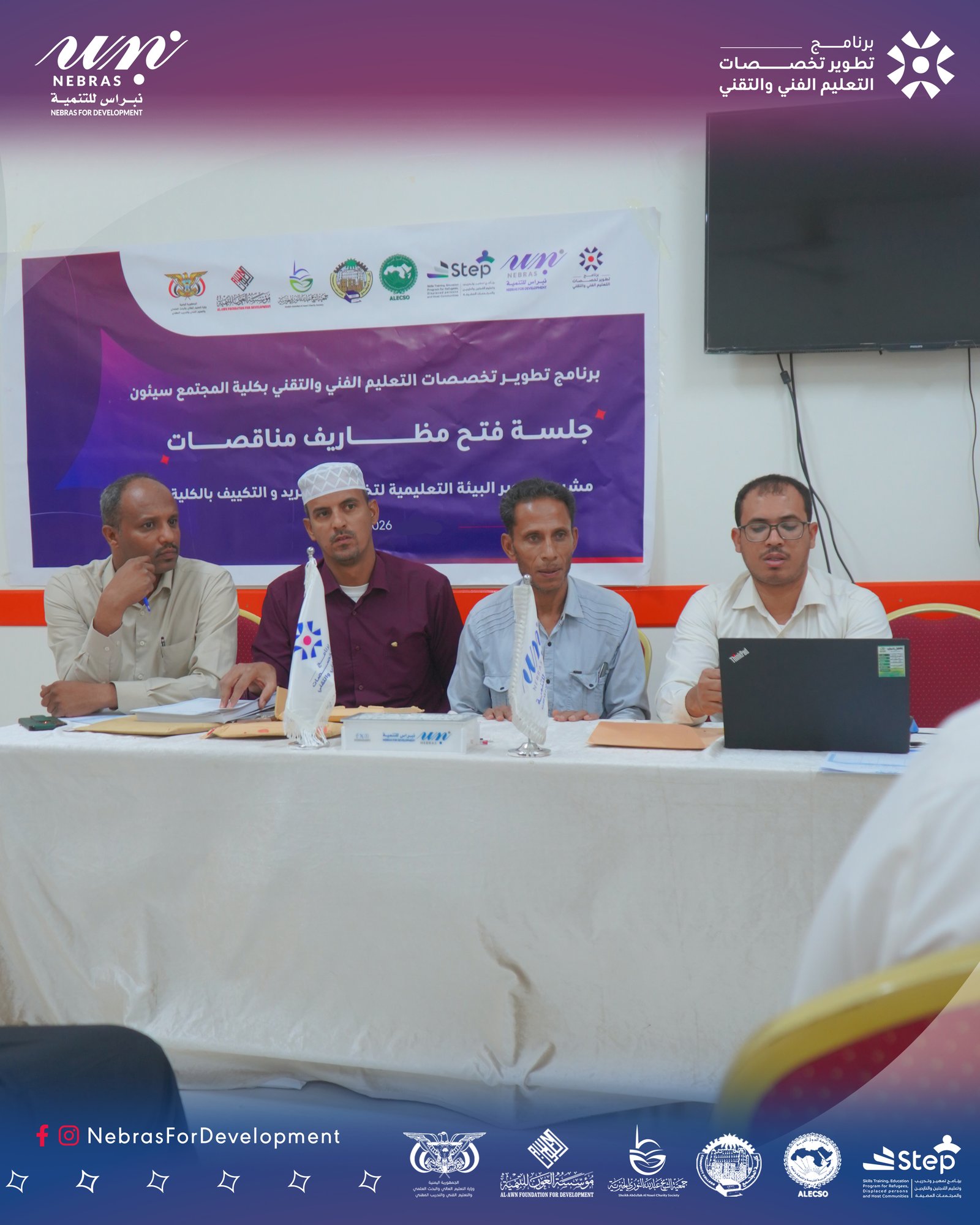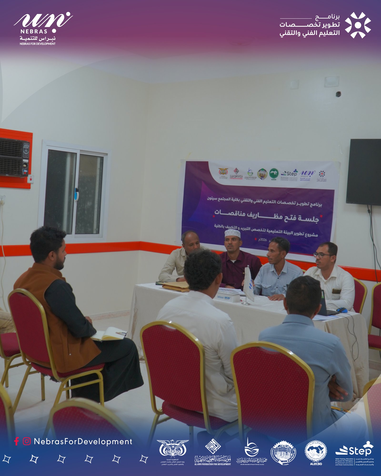 ويُنفذ المشروع بتمويل مؤسسة العون للتنمية و جمعية الشيخ عبد الله النوري الخيرية، وتنفيذ Nebras For Development ، وبإشراف وزارة التعليم الفني والتدريب المهني، في إطار الجهود المشتركة لدعم وتطوير التعليم الفني والتقني.