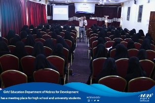 On Saturday 13/3/2021, girls' education department of Nebras for Development has a meeting place for high school and university students in attendance of ( 100 ) girls who benefited of the project, during the meeting , there is a workshop which entitled ( My Launch) fot T/Sami Musalim, where he urged them on the methods and skills that help them discover themselves as well as advance them to the better. Miss. Wafa Amroon, Director of the Girls' Education Department at the Association, began with a speech urging students to provide knowledge and achieve supervisory educational levels, and she clarified the plan, vision and goals of the Girls ’Education Department for the year 2021 .