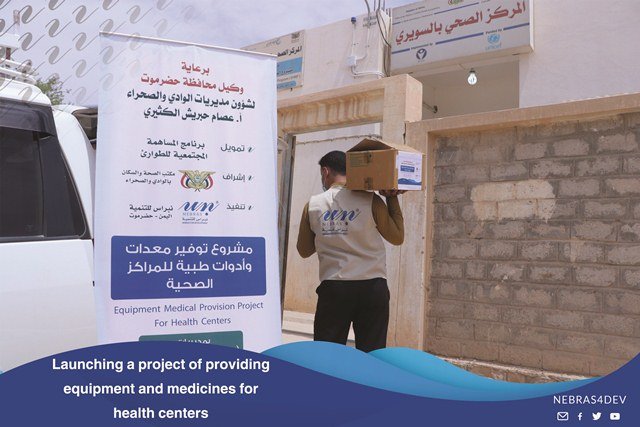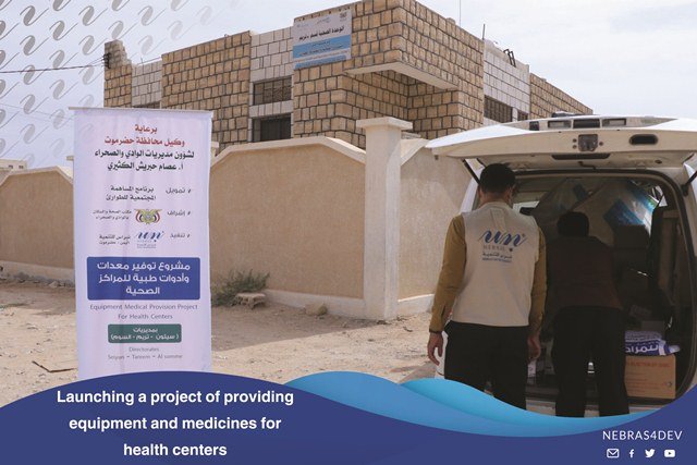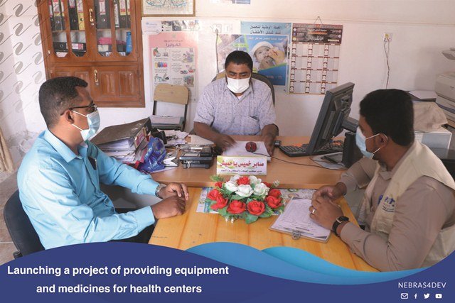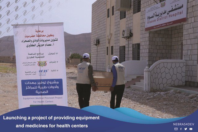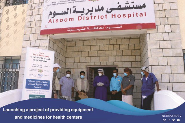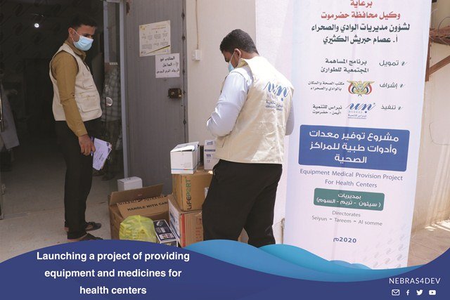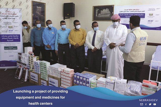 The Director General of the Somm Directorate, Mr. Anees Salem Al Samahi praised the efforts of Nebras for Development in the health field, during the event which is held by the local authority and the Office of the Ministry of Health in the Somm Directorate on the occasion of providing medicines, equipment and medical tools by Nebras for development to the Directorate Hospital.Where this support comes within the program of Community contribution for emergency.Mr. Anees Al-Samahi, “The Director General of the Somme Directorate”, and the Director of the Health and Population Bureau, Mr. Saber Bahamish, thanked and appreciated the efforts provided by Nebras for Development to alleviate the citizens who suffer from widespread fevers, as well as the importance of this equipment and the urgent need of the hospital for it.