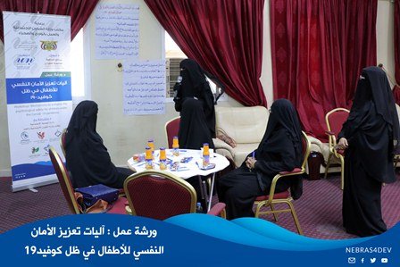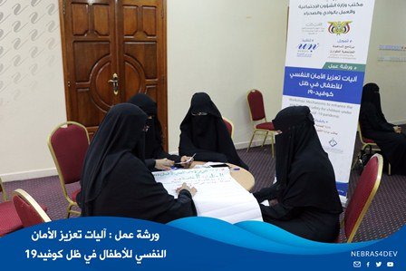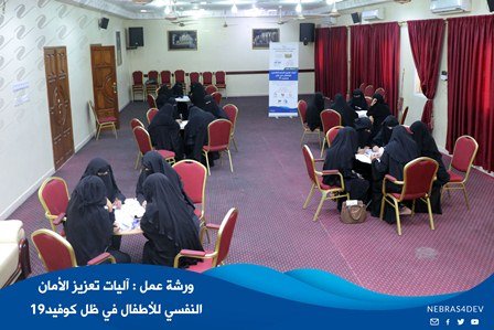 نظم قسم الحماية بجمعية نبراس مساء هذا اليوم الخميس 9 يوليو ورشة عمل حول ( آليات تعزيز الأمان النفسي للأطفال في ظل كوفيد19 ) لـ 30 مشاركة من الكادر النسائي المختص بإدارة برامج الحماية والتنمية للأطفال