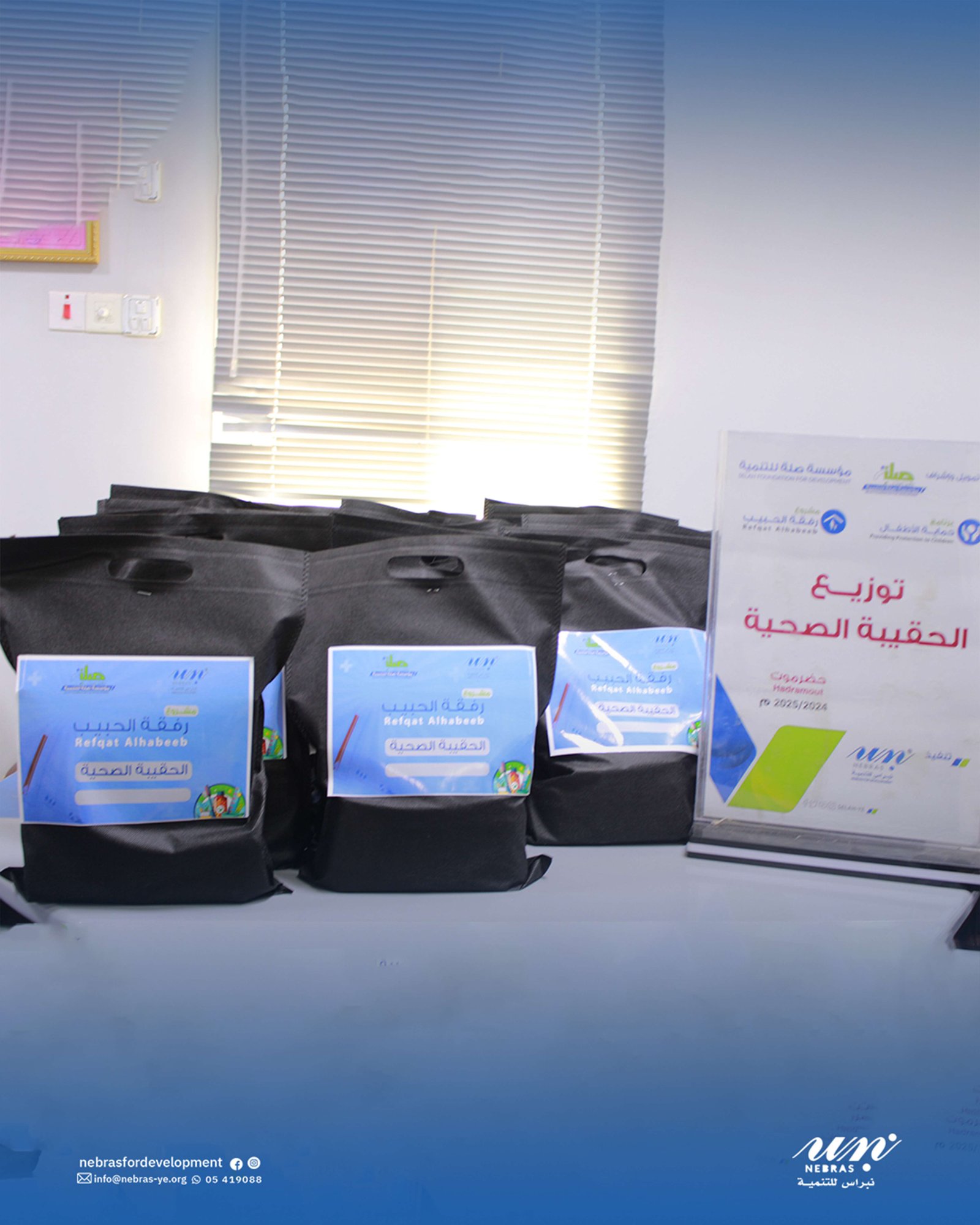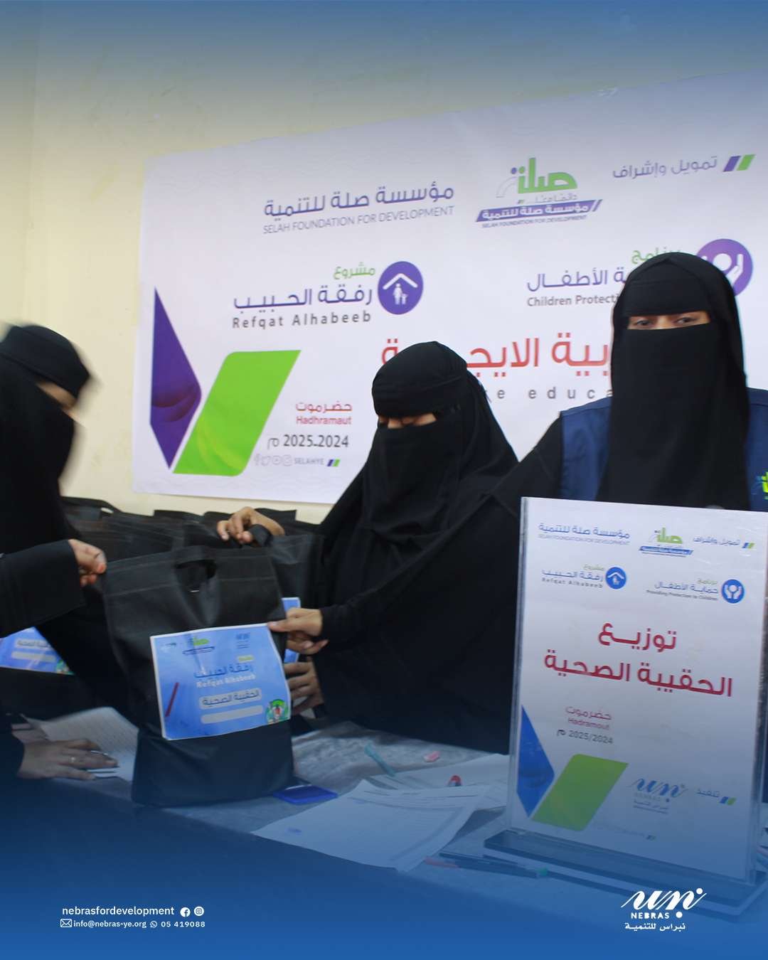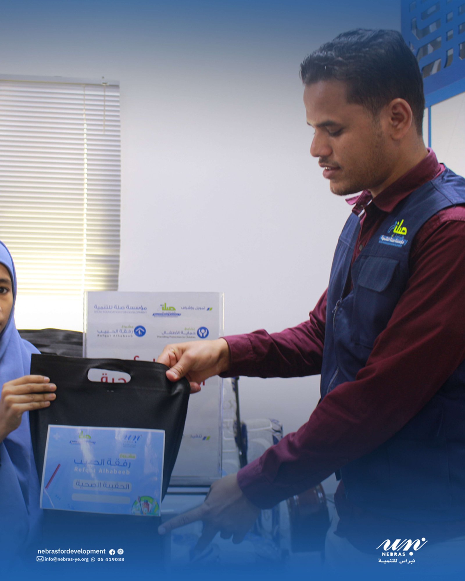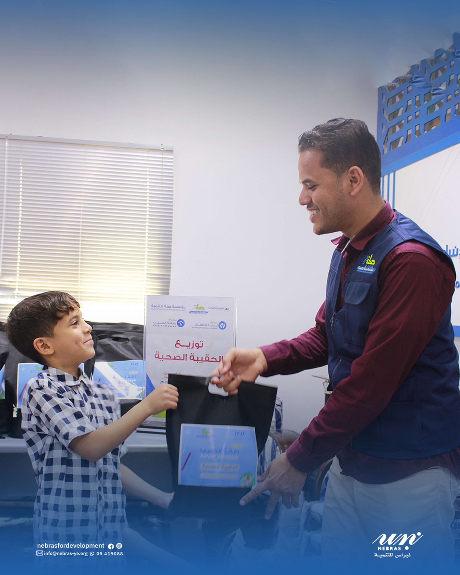 حمايةً لصحة أطفالنا بمشروع #رفقة_الحبيب تمّ توزيع #الحقيبة_الصحية والتي تتضمن أهم الاحتياجات الصّحية الأساسية، وذلك كجزءٍ من التَّدخلات الوقائية لحمايتهم من الأمراض، تعزيز مُمارستهم للنّظافة الصّحية، وأيضًا رفع الوعي الصِّحي لديهم وأُسرهم..