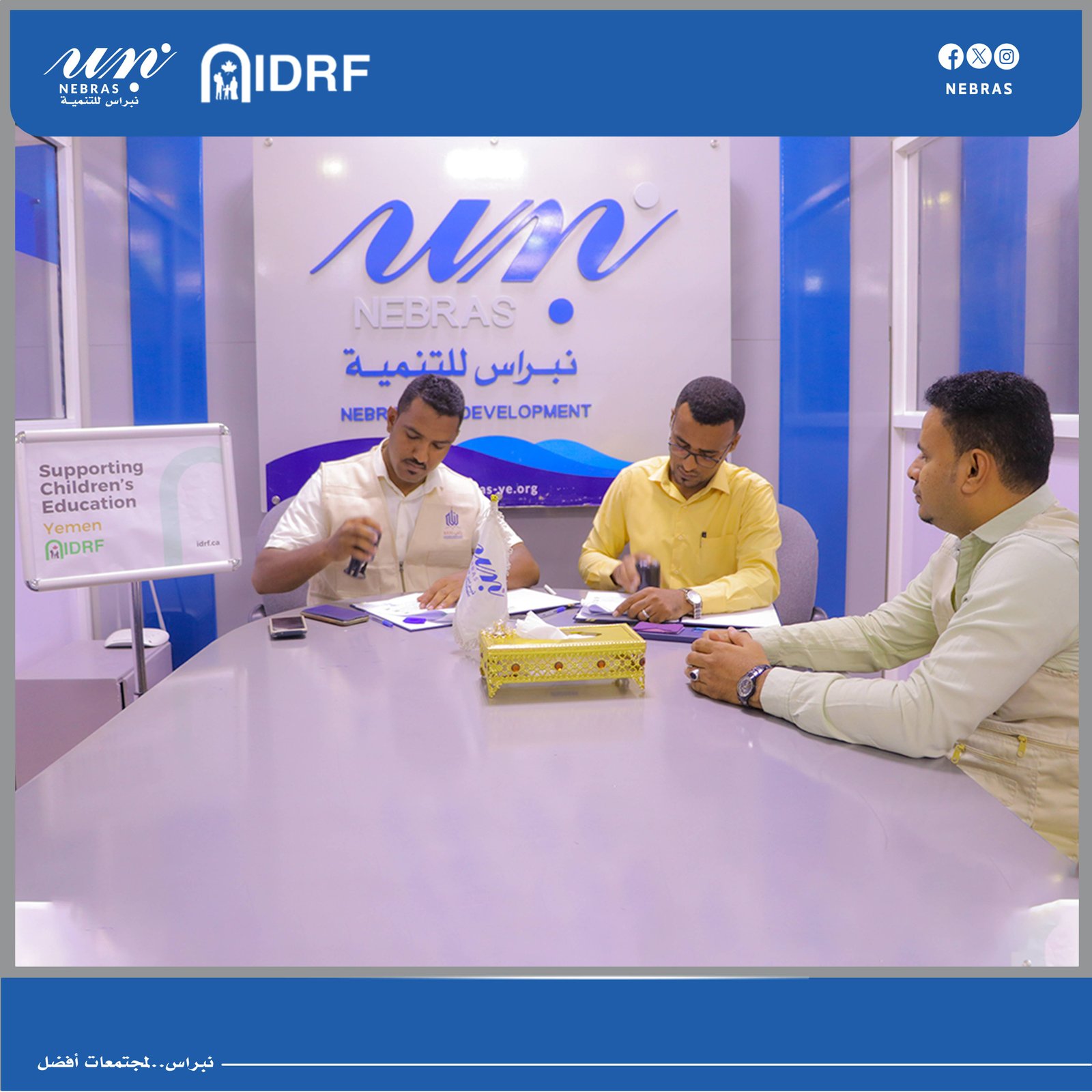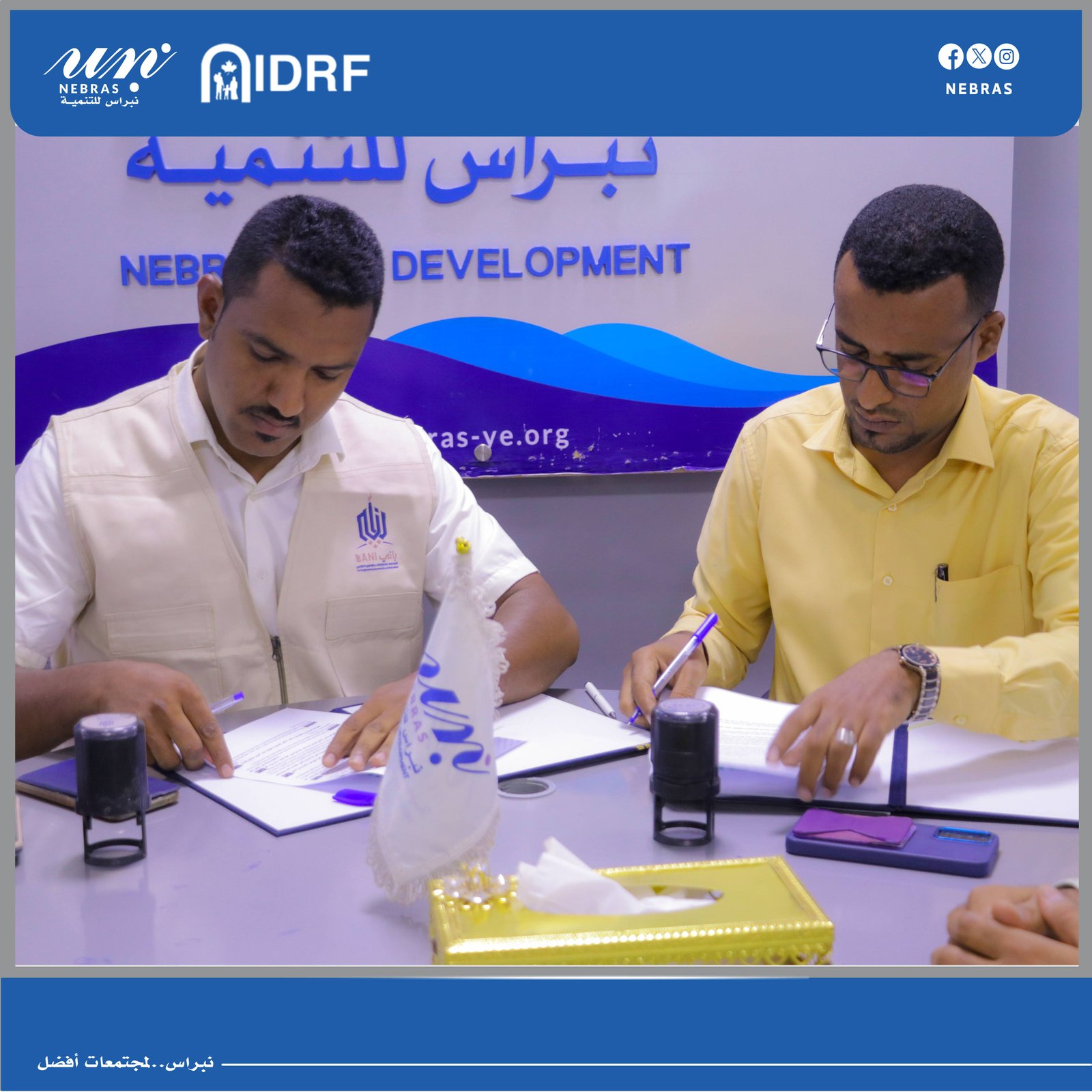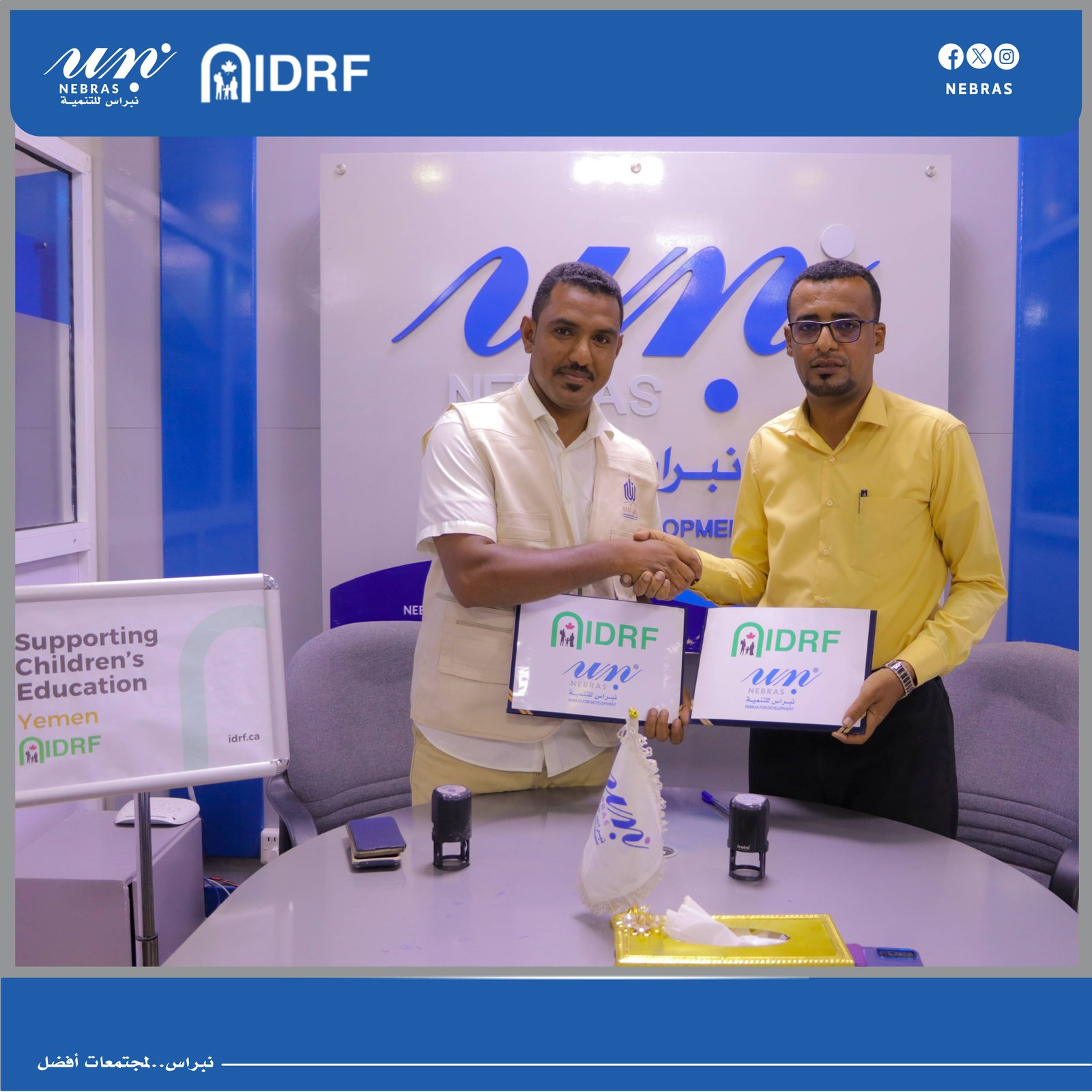 ضمن مشروع #تعليم_الأطفال الذي تنفذه نبراس للتّنمية بتمويل من المؤسسة الدولية للتنمية والإغاثة الكندية #IDRF ، تم توقيع اتفاقيّة توريد المستلزمات المدرسية مع باني للهندسة والمقاولات والتطوير العقاري، تضمنت الإتفاقيّة توريد الحقيبة المدرسية، الزّي المدرسي، والأثاث لِلمدارس المستهدفة كجزءٍ من أنشطة المشروع الرئيسة.