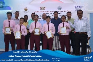 برعاية مدير عام مديرية سيئون الأستاذ: *محمد عوض العامري* وبالشراكة مع جمعية نبراس للتنمية ، نظمت إدارة التربية والتعليم بمديرية سيئون (قسم الأنشطة المدرسية) يوم الثلاثاء ١٦ مارس حفلا ختاميا وتكريميا للمسابقة العامة لمدارس التعليم الأساسي والثانوي *(بنين وبنات)* بالمديرية بمشاركة ٥٤ مدرسة .