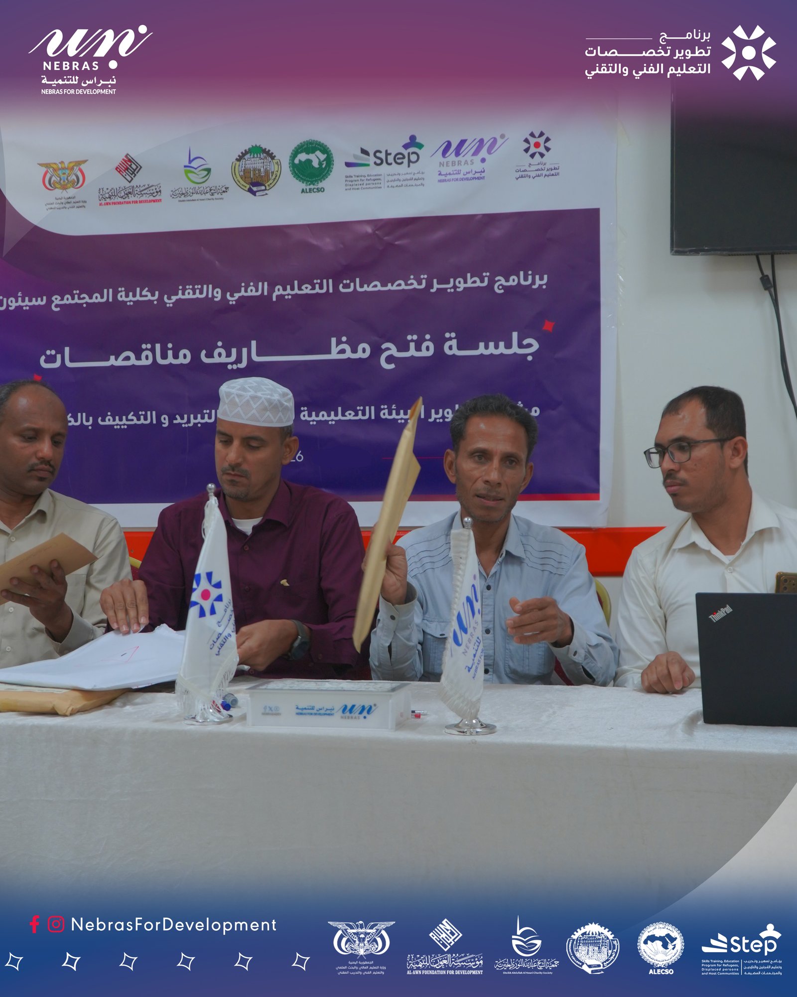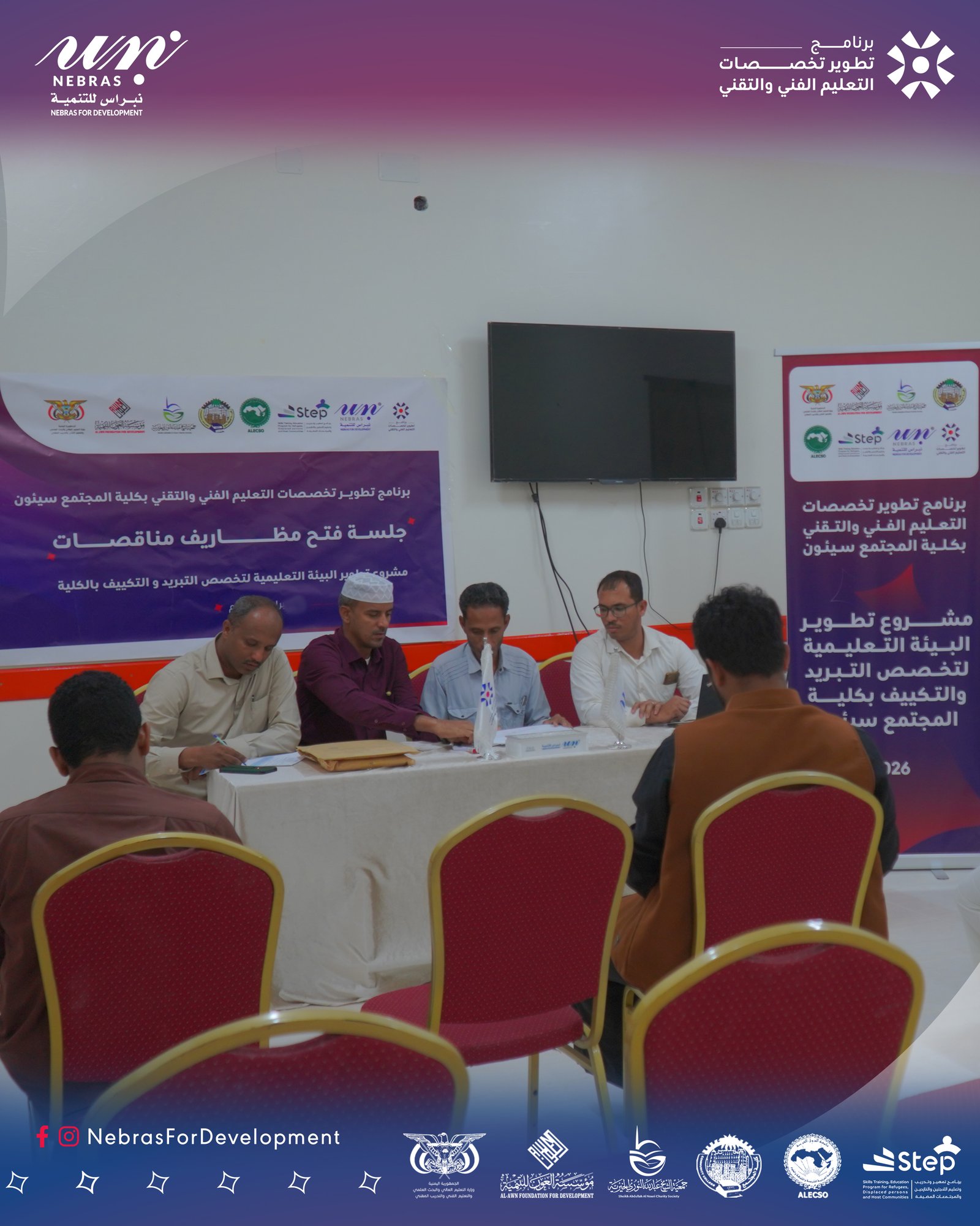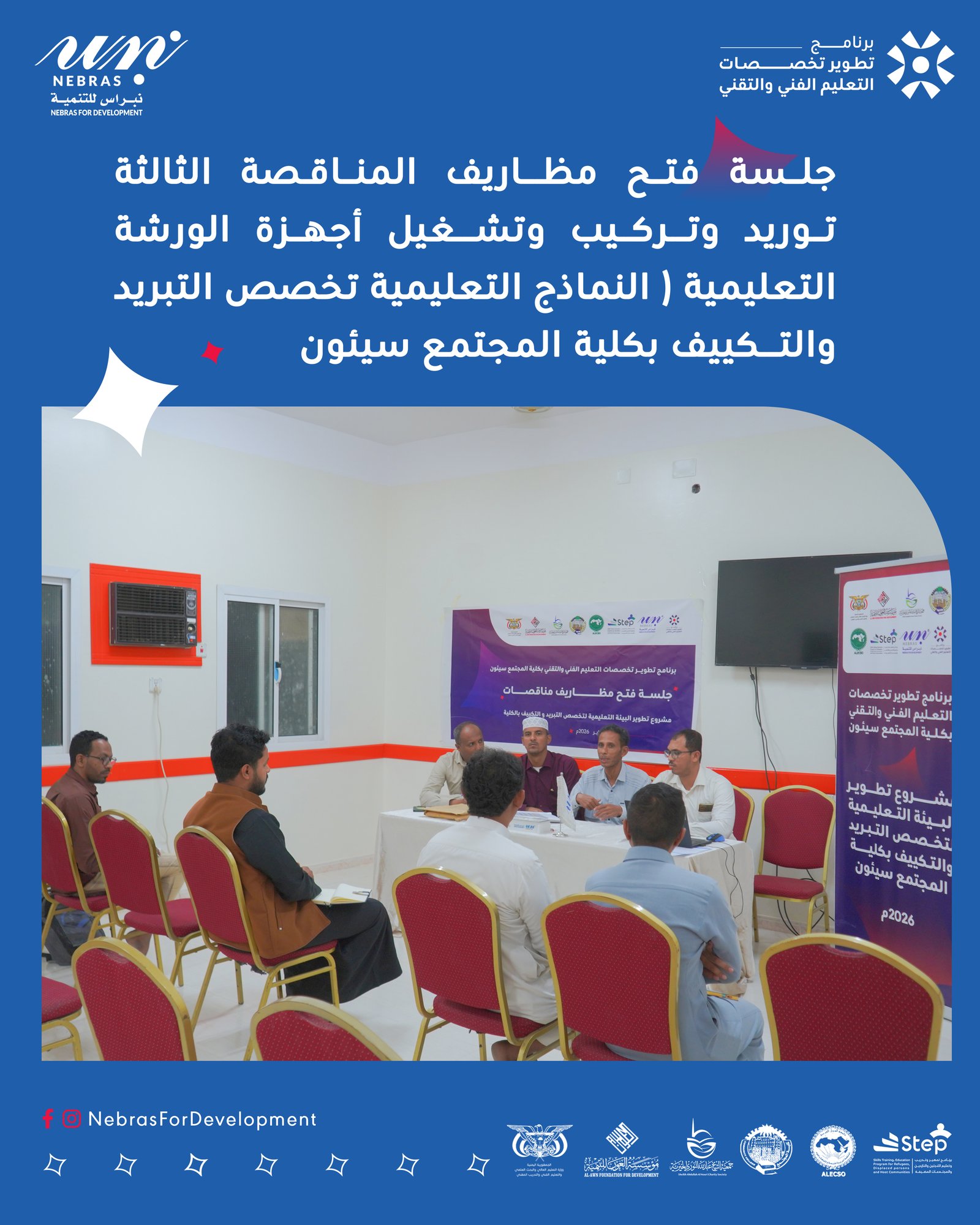 ويُنفذ المشروع بتمويل مؤسسة العون للتنمية و جمعية الشيخ عبد الله النوري الخيرية، وتنفيذ Nebras For Development ، وبإشراف وزارة التعليم الفني والتدريب المهني، في إطار الجهود المشتركة لدعم وتطوير التعليم الفني والتقني.