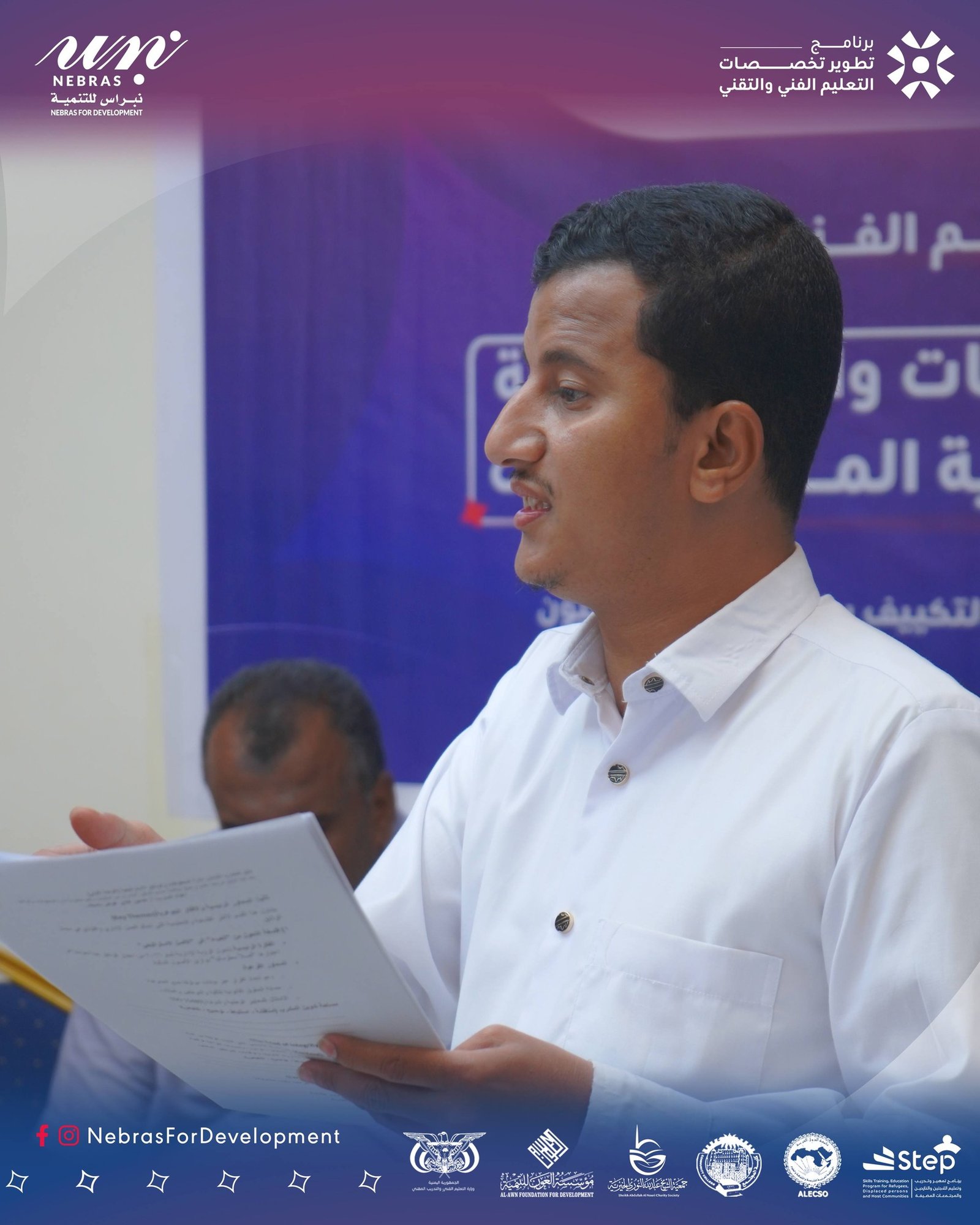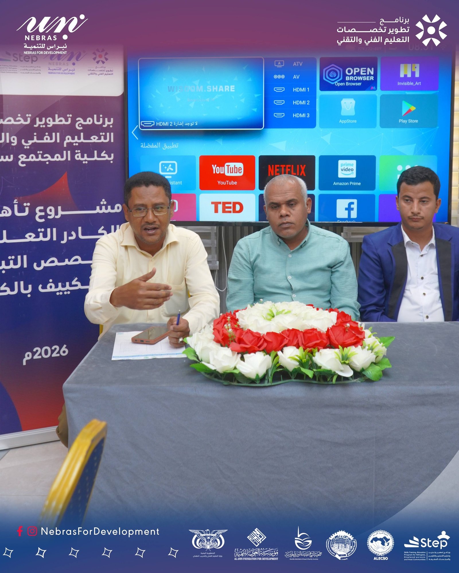 وتُنفَّذ الدورة بتمويل من مؤسسة العون للتنمية جمعية الشيخ عبد الله النوري الخيرية ، وبإشراف وزارة التعليم الفني والتدريب المهني، وتنفيذ Nebras For Development ، إسهامًا في رفع كفاءة الكادر، وتحسين جودة التعليم التطبيقي، وتعزيز جاهزية المخرجات لمتطلبات سوق العمل.