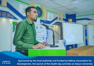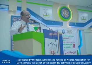 The General Union of Seiyun University Students, in partnership with the Wellness Health Team of the College of Medicine and Health Sciences, and funded by Nebras Association for Development, organized an open health day for Seiyun University students, which was attended by the Assistant Undersecretary of Hadramout Governorate for Valley and Desert Affairs, Prof. Abdel-Hadi Al-Tamimi, President of Seiyun University, and Prof. Muhammad Ashour Al-Kathiri and a number of college deans.