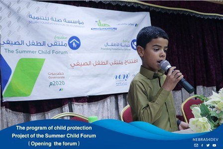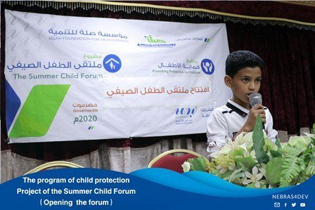 Nebras for Development launched the project of the Summer Child Forum for 50 participating children for both sexes, which comes within the program of child protection and a practical output from the outputs of the workshop held by the association entitled( Mechanisms to enhance psychological safety for children under coved 19), where the project aims to protect children from the effects of the negative spaces and enhance the psychological safety , social protection for them by investing their time in useful program while taking the necessary precautions in the physical spacing and public hygiene to ensure their safety from infection with coved 19. The forum includes many interactive activities in the educational and entertainment aspects, talent discovery and psychological support programs. During the opening cermoney, Mr. Hasan Al- Sukker, the Executive Director of the Association thanked Selah Foundation for Development for their funding of such programs , explaining that the project management team was carefully chosen in order to provide better content for the participating children.