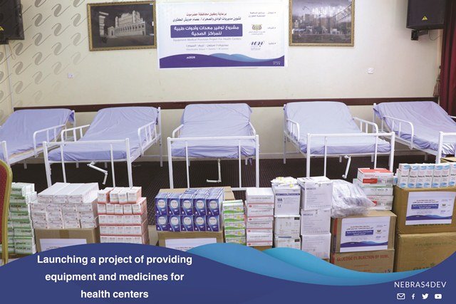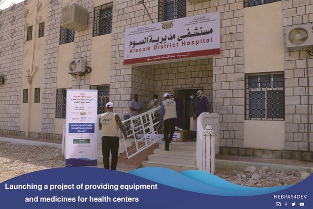 The Director General of the Somm Directorate, Mr. Anees Salem Al Samahi praised the efforts of Nebras for Development in the health field, during the event which is held by the local authority and the Office of the Ministry of Health in the Somm Directorate on the occasion of providing medicines, equipment and medical tools by Nebras for development to the Directorate Hospital.Where this support comes within the program of Community contribution for emergency.Mr. Anees Al-Samahi, “The Director General of the Somme Directorate”, and the Director of the Health and Population Bureau, Mr. Saber Bahamish, thanked and appreciated the efforts provided by Nebras for Development to alleviate the citizens who suffer from widespread fevers, as well as the importance of this equipment and the urgent need of the hospital for it.